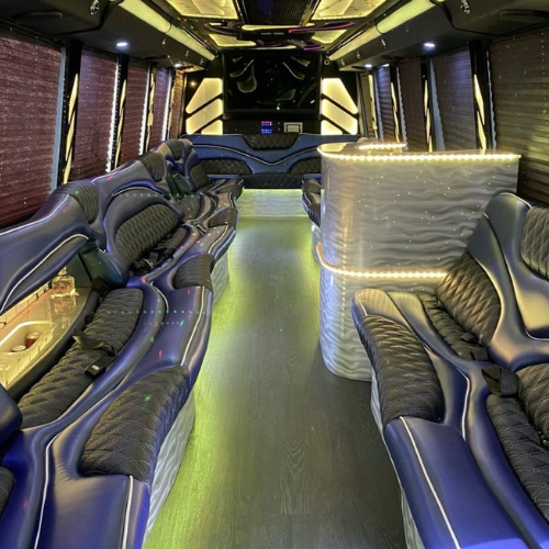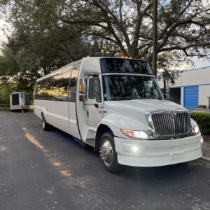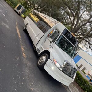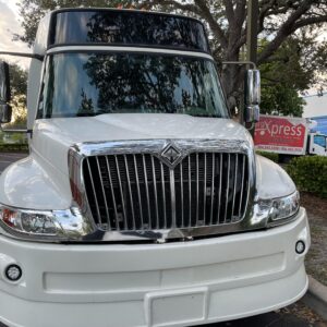 Our 35-Passenger White International Party Bus is a true showstopper in Fort Lauderdale, offering a one-of-a-kind luxury experience for group celebrations. This beautifully designed party bus features a spacious, upscale interior with multiple minibars, a dedicated DJ booth, and vibrant color-changing LED lights that set the perfect party mood. Enjoy a powerful surround sound stereo system, full multimedia setup, and seamless Bluetooth connectivity to play your favorite music all night long. Designed for comfort, style, and nonstop entertainment, this International party bus is ideal for birthdays, weddings, nights out, and special events where making a grand entrance truly matters.